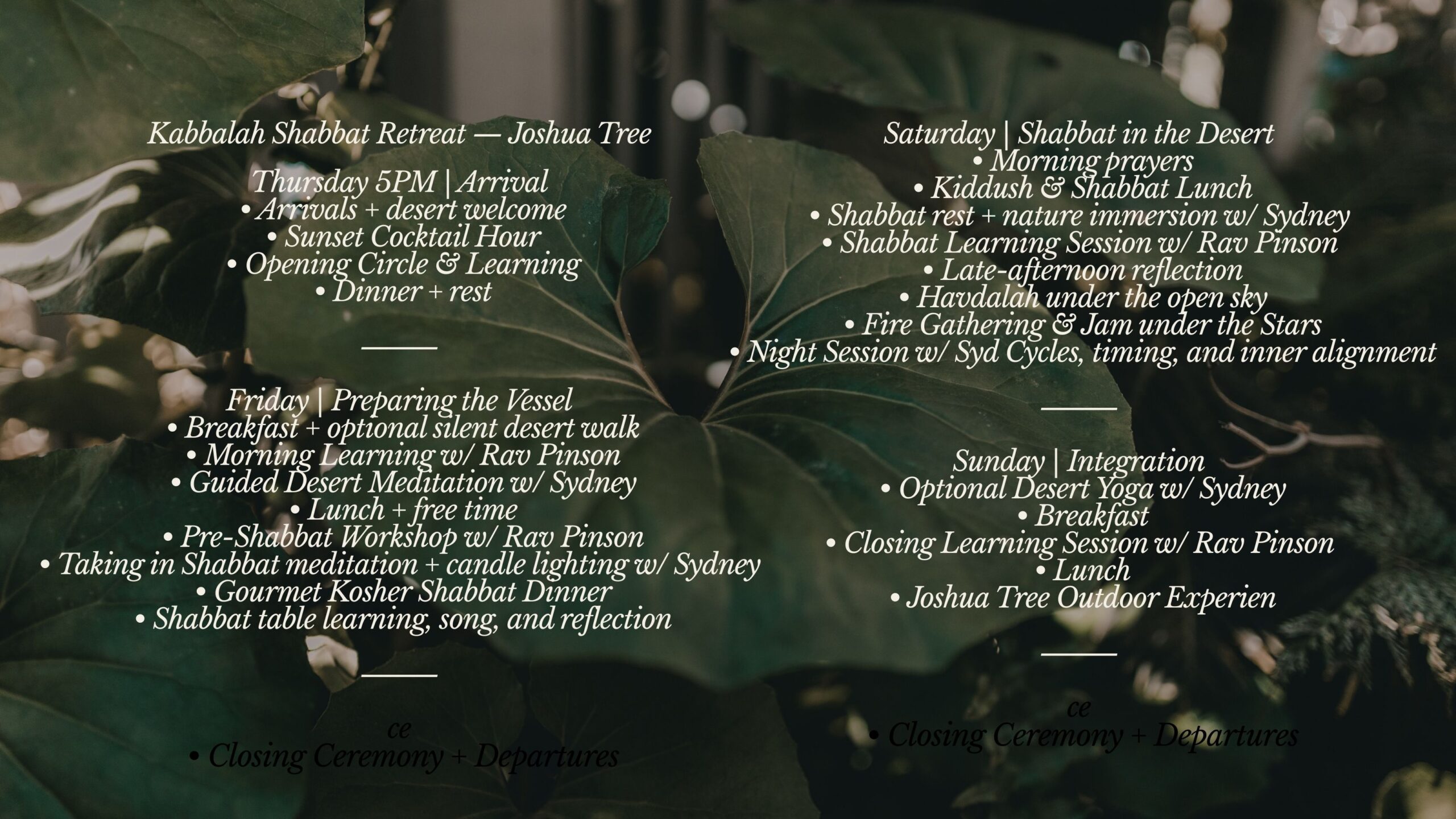 Upcoming shabbat