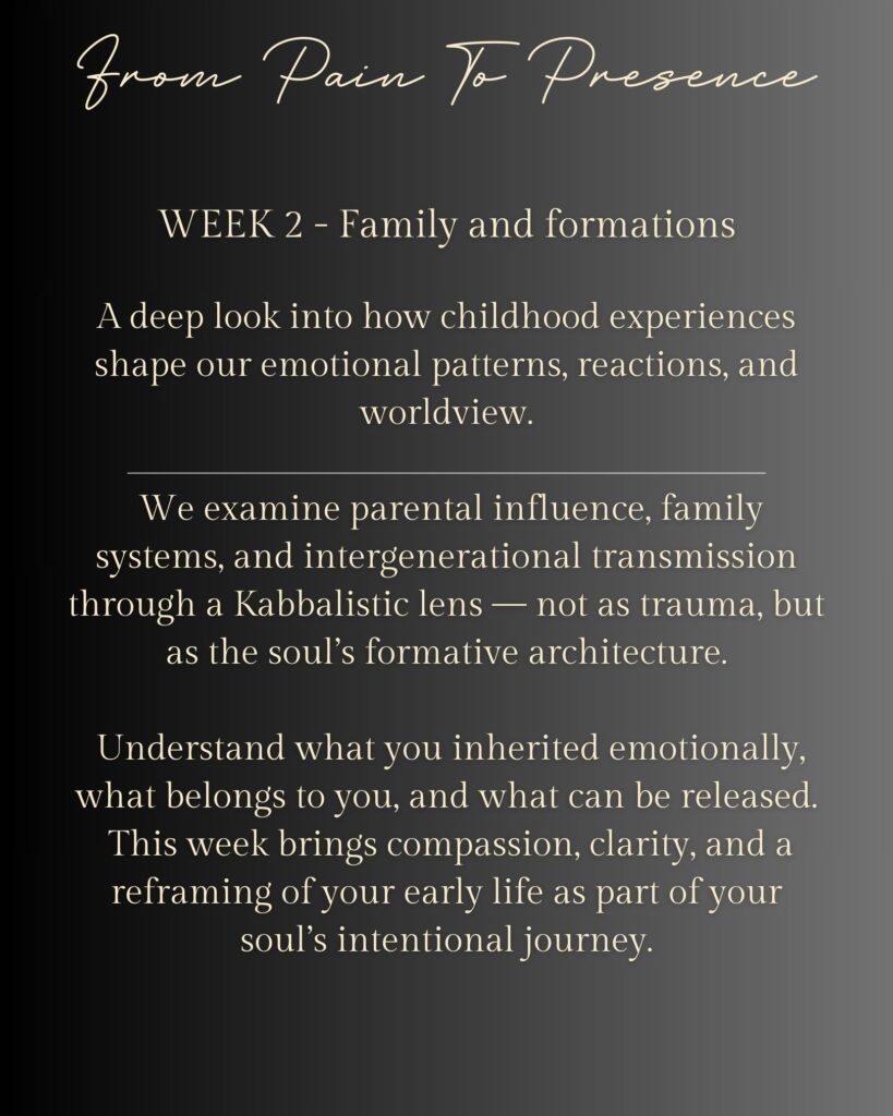This course is about learning to sit with your inner experiences, uncovering the light inside pain, and expanding into greater awareness and inner spaciousness. It offers a grounded, soulful framework for understanding the patterns we inherited and how to rise above them with dignity, curiosity, and compassion.