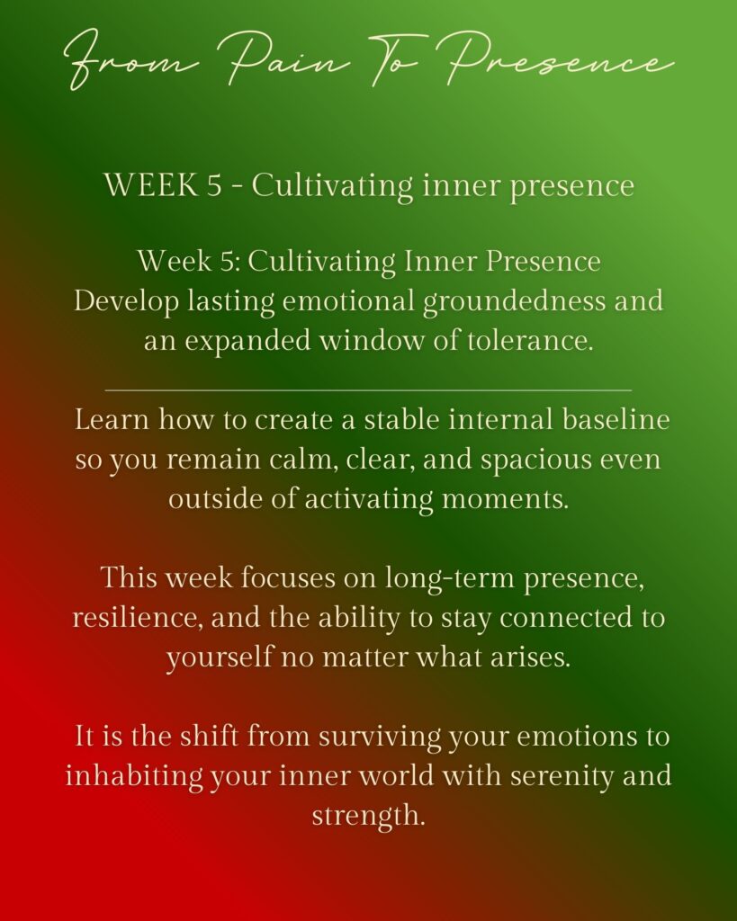 This week teaches you how to stay steady in the moment — when intensity hits, when your system tightens, or when you feel reactive or overstimulated.