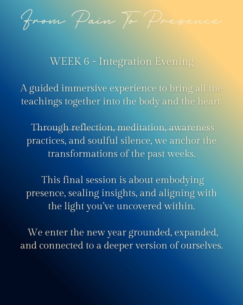 A guided evening of presence, reflection, meditation, and soulful integration to anchor the work into the new year.
